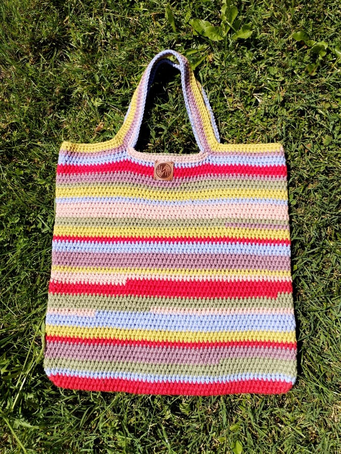 Torba Tęczowe Pasy – szydełkowa torba z kolorowej bawełny 100%